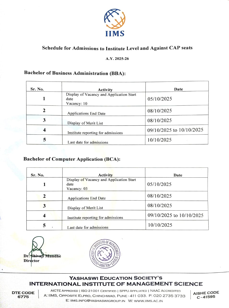MBA/MCA Institute Level and Against CAP Admission 2025-26